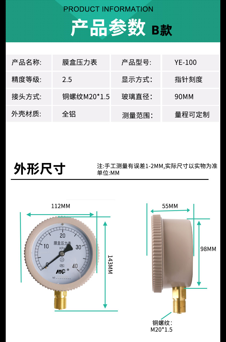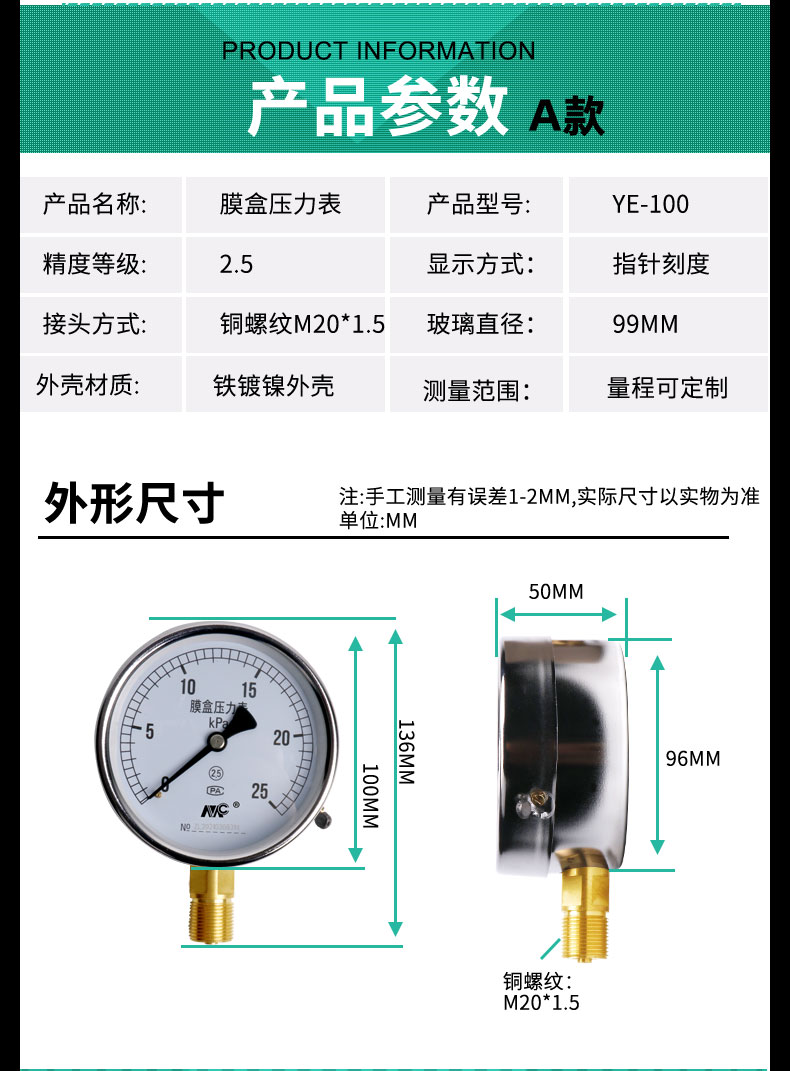 YE-100膜盒壓力表
