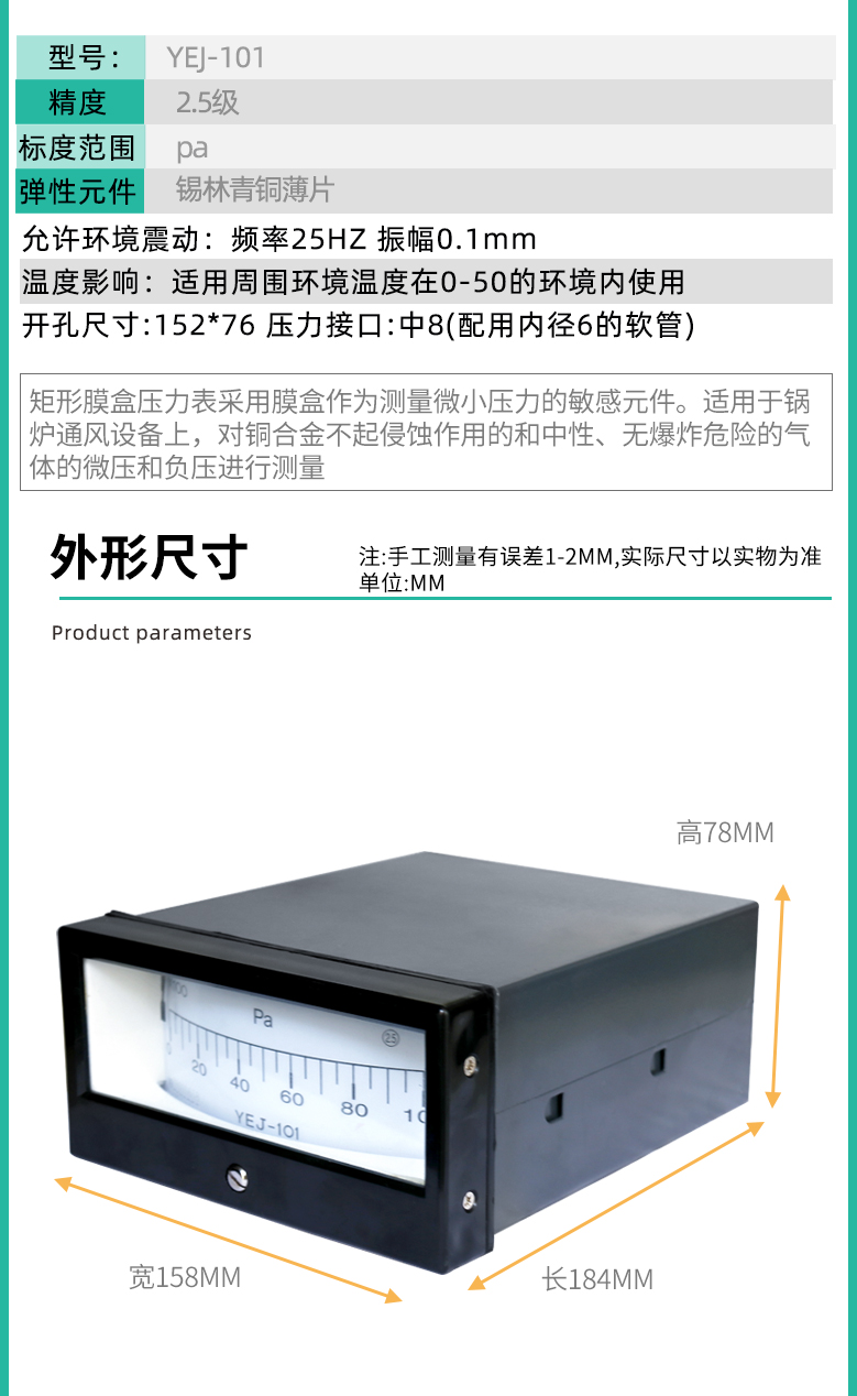 YEJ-101矩形膜盒壓力表